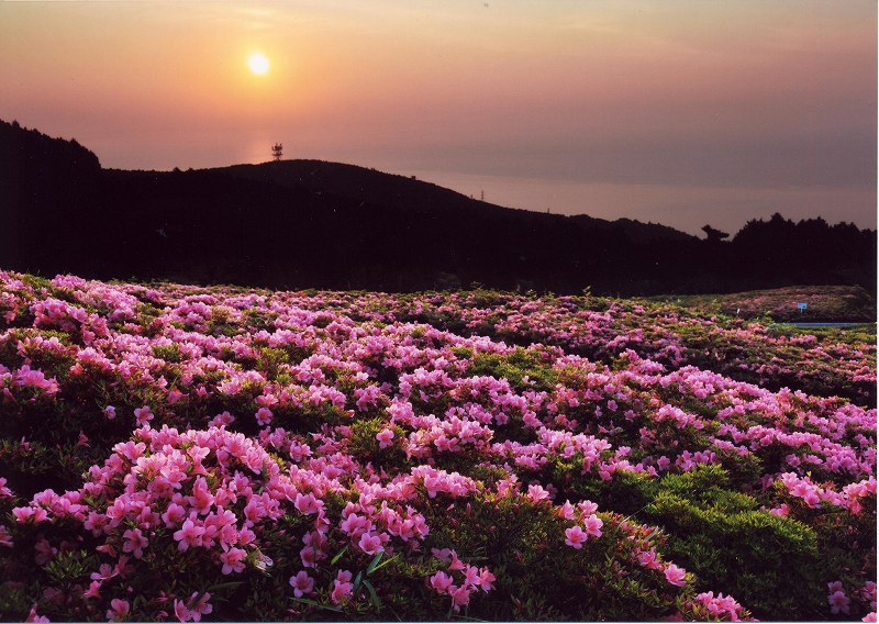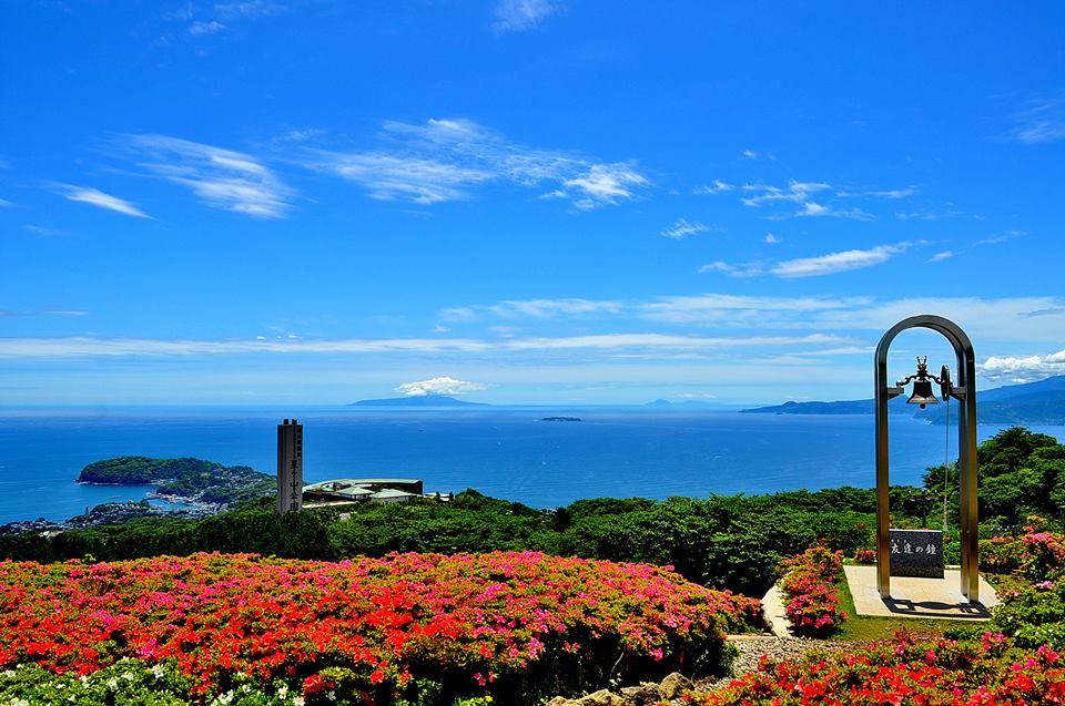 相模湾を見下ろす丘陵では、5月下旬から6月上旬にかけて、5,000本のさつきの花が咲き誇ります。